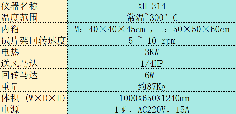 原理:利用可控制的加热系统,使空气由外部藉鼓风机吸入后得以加热成热空气,并藉由通风管将热空气散布于工作室中,将利用过的热空气由仪器上方的出气孔排出,以达到空气循环的目的,进而促进试样(试片)在热空气循环状况下在一定时间后达到老化的目的(试样物性衰退或变色等现象)。