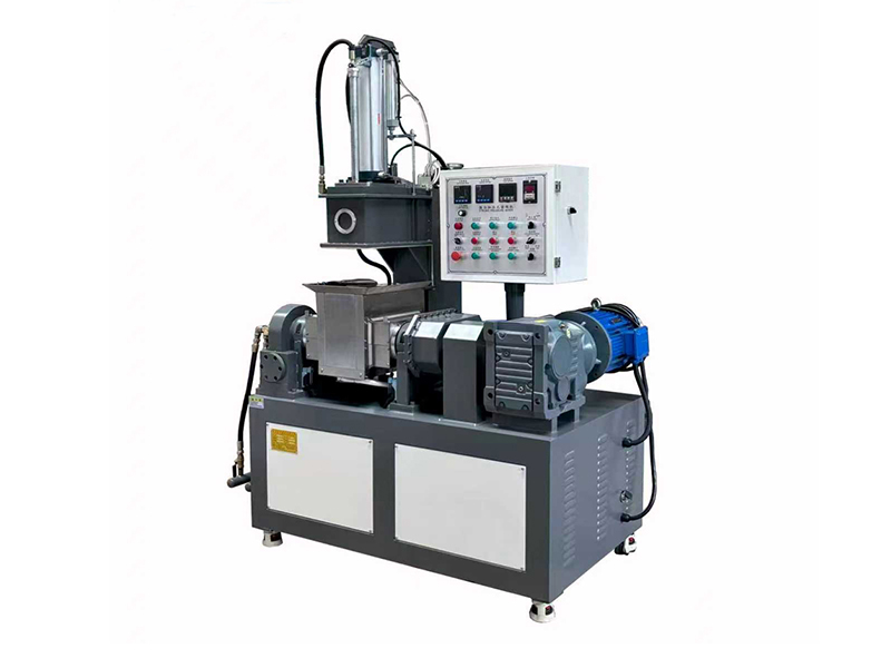 压砣由气缸带动,压料装置的压砣在气缸的推动下对物料进行加压。压砣采用夹套焊接结构,内部通水冷却,与物料接触表面硬化处理。压砣四周装有密封条,防止混炼过程中粉料外泄。压料装置的气缸安装在机架顶面,运行过程由限位开关限位。